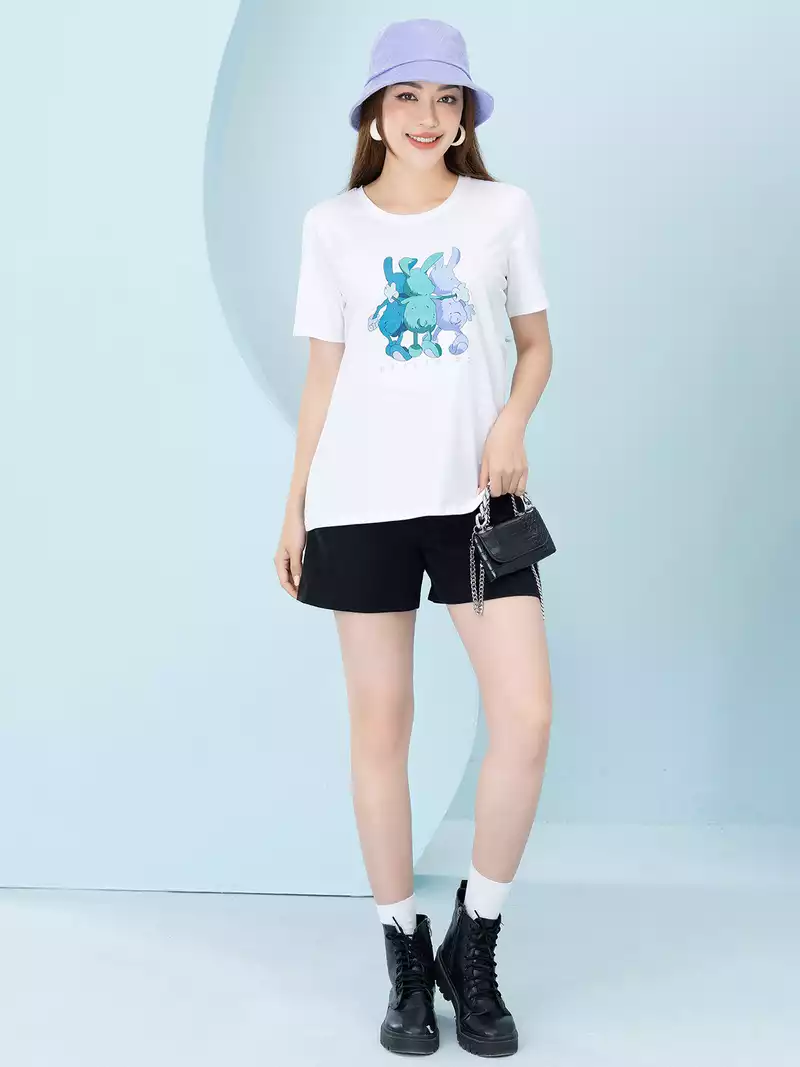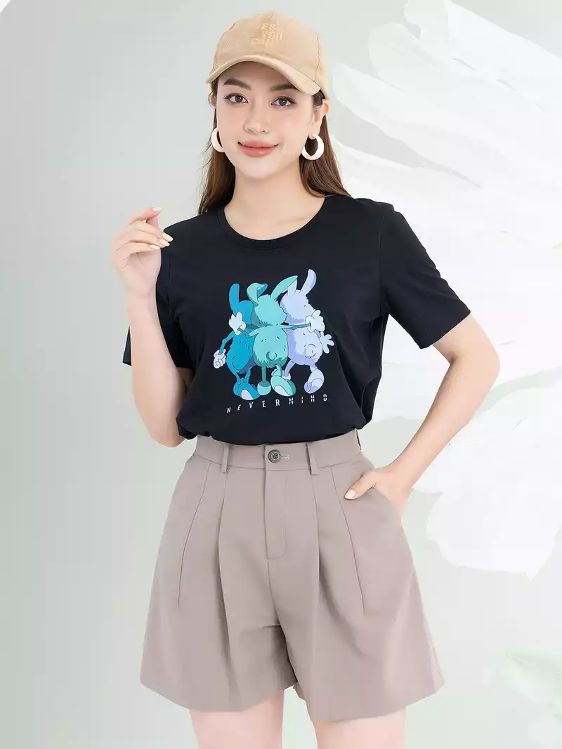 Áo phông nữ phom rộng in hình 3 con thỏ