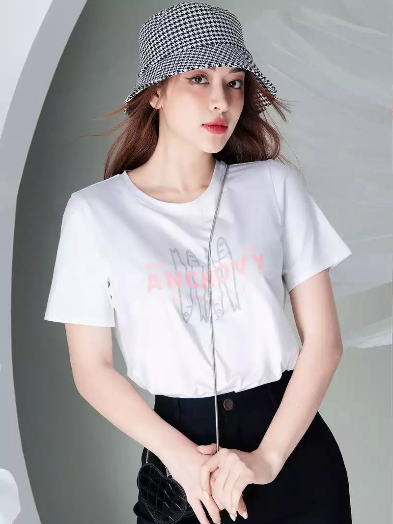 Áo phông nữ phom rộng in hình cá