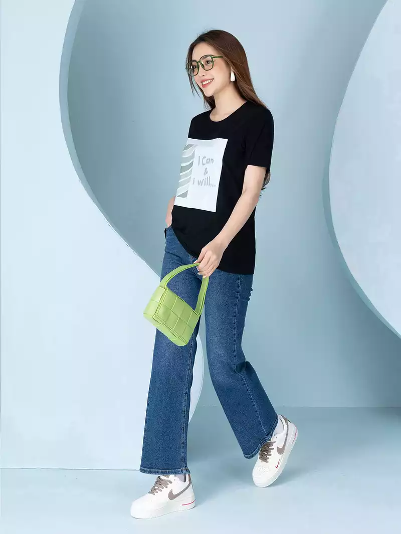 Áo phông nữ phom rộng in hình I can & I will
